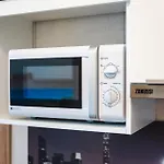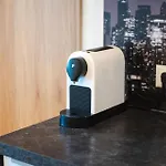 Наряду с кофеваркой на мини-кухне предоставляются электрочайник, холодильник и тостер.